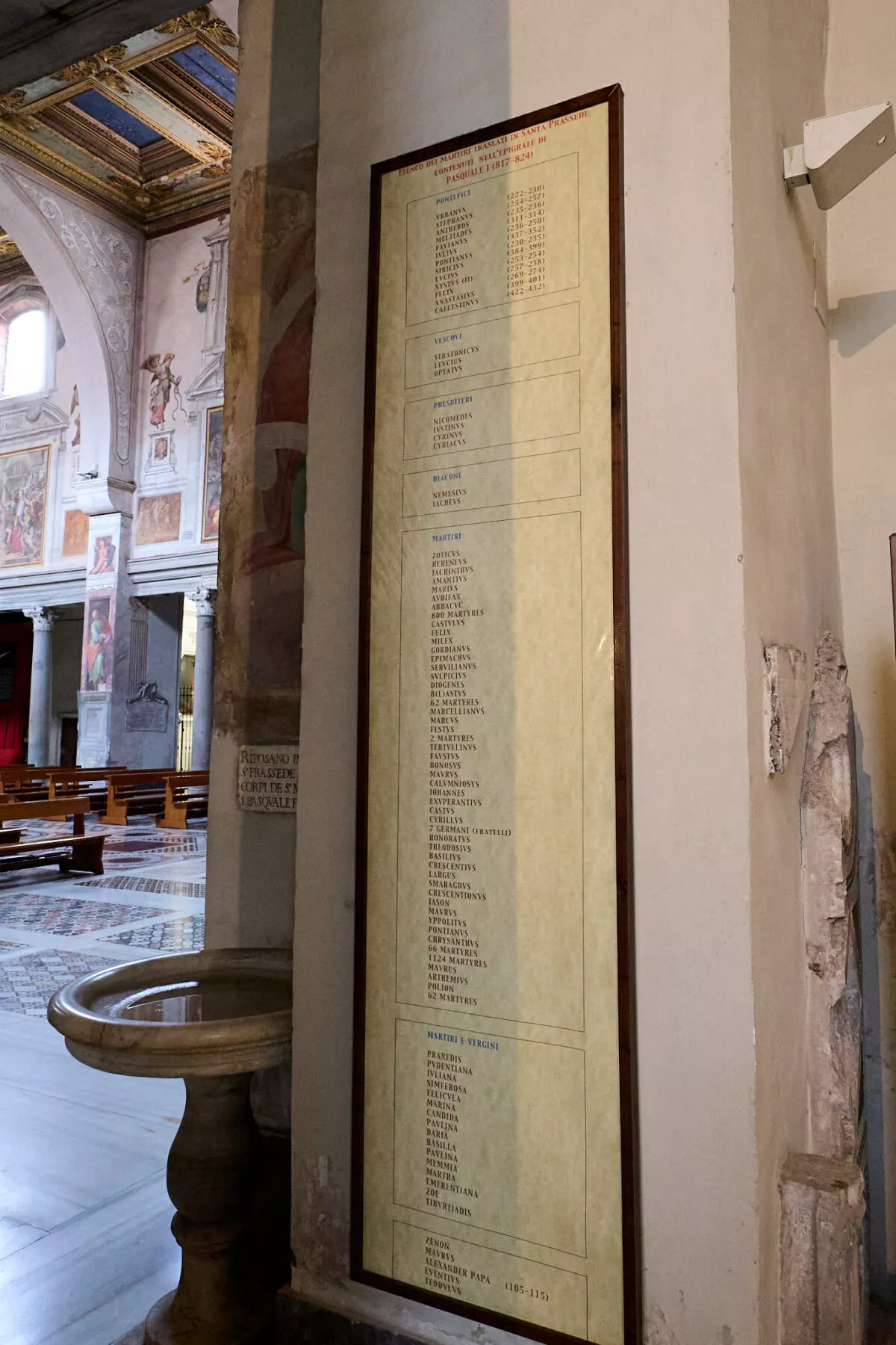 W kościele, a konkretnie w krypcie pod głównym ołtarzem, znajdują się też kości św. Praksedy i jej siostry św. Pudencjany oraz szczątki wielu męczenników sprowadzone z katakumb chrześcijańskich, głównie z katakumb Pryscylli przy Via Salaria.
