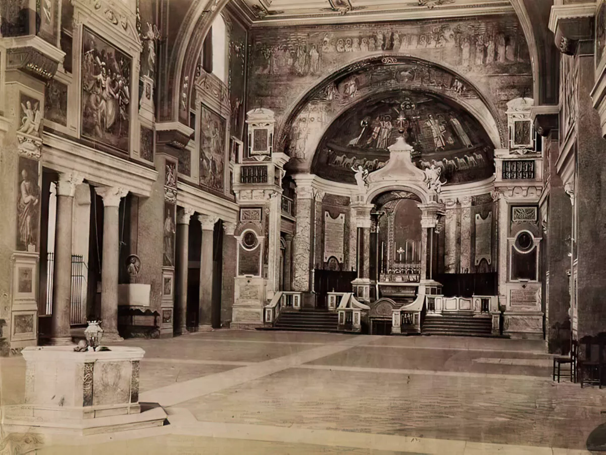 W IX wieku, na polecenie papieża Paschalisa I (817-824), wzniesiono obecną bazylikę, do której przeniesiono kości 2300 męczenników pochowanych w katakumbach Pryscylli przy Via Salaria.