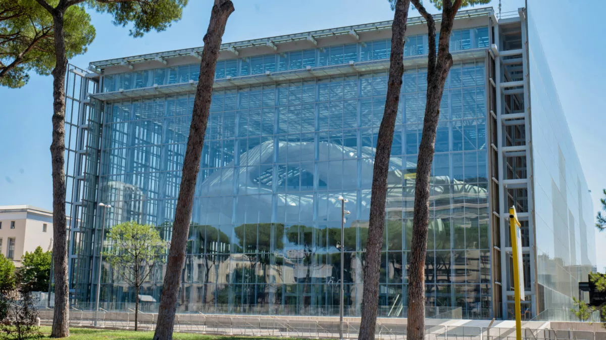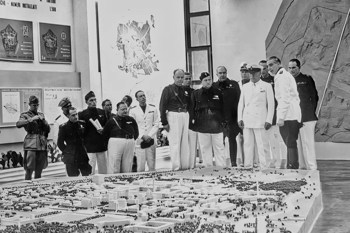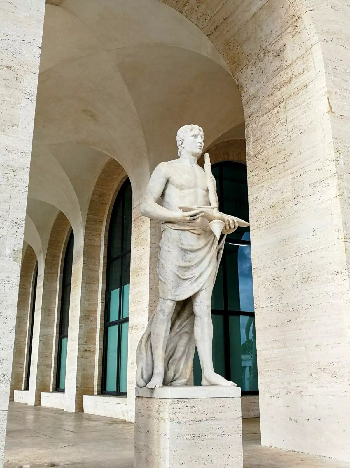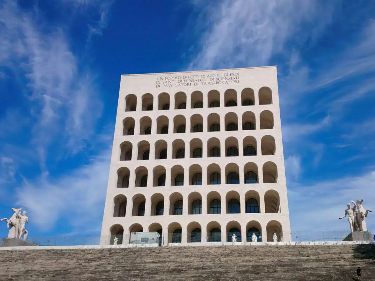 Łuki pałacu przypominają kultowe rzymskie Koloseum, tworząc połączenie między starożytną rzymską wielkością a nowoczesnością, do której miał ambicję poprowadzić reżim faszystowski.