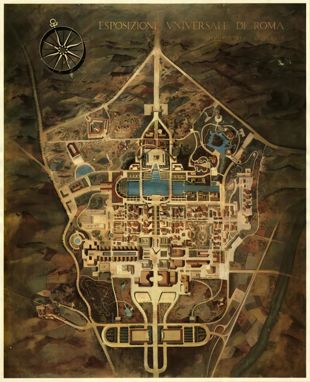 EUR – faszystowski trzeci Rzym, trzeci po pierwszym starożytnym i drugim papieskim. Miasto symbolizujące starożytność i chrześcijaństwo miało stać się ucieleśnieniem nowoczesności i faszystowskiego geniuszu. Mussolini zamierzał zaprojektować i stworzyć nowy Rzym, skłaniający się ku przyszłości i morzu, nową faszystowską dzielnicę, która poprzez pomniki, ulice i budynki reprezentowałaby projekcję futurystycznego i nowoczesnego Rzymu.