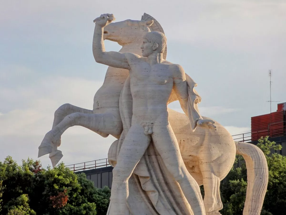 4 duże grupy rzeźbiarskie przedstawiające Dioskurów (synów Zeusa), mitycznych bliźniaków Kastora i Polluksa, czczonych przez starożytnych Rzymian jako patronów wojska i zbawców.