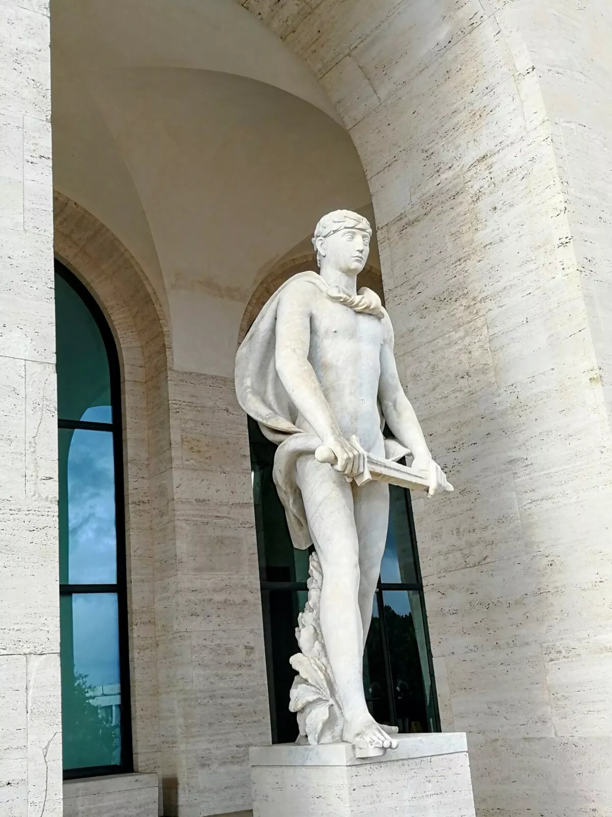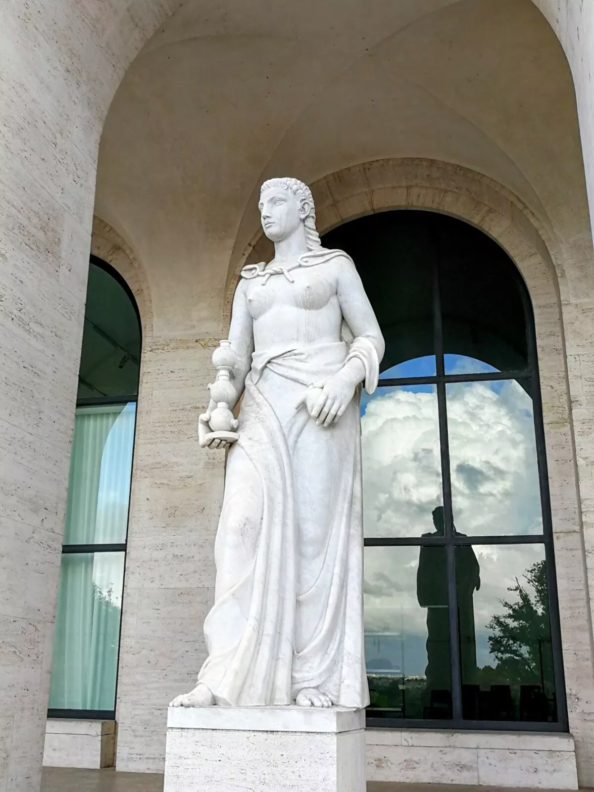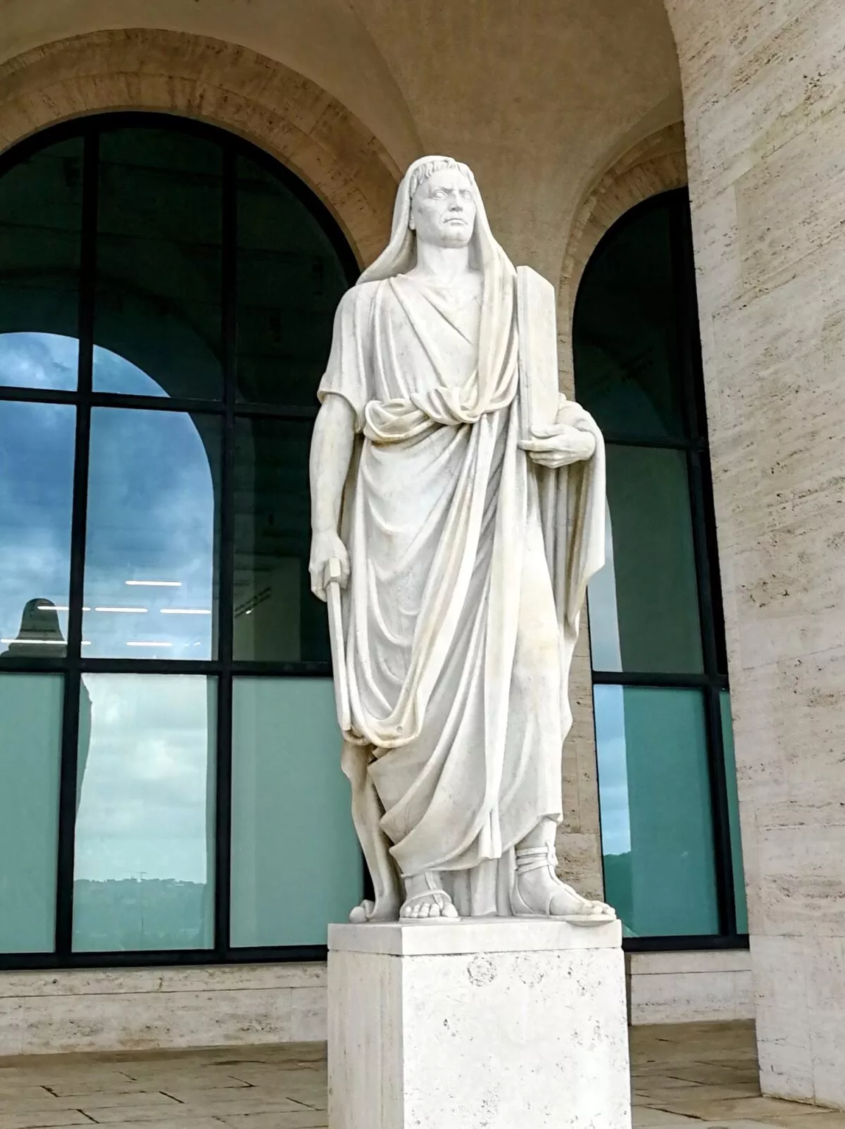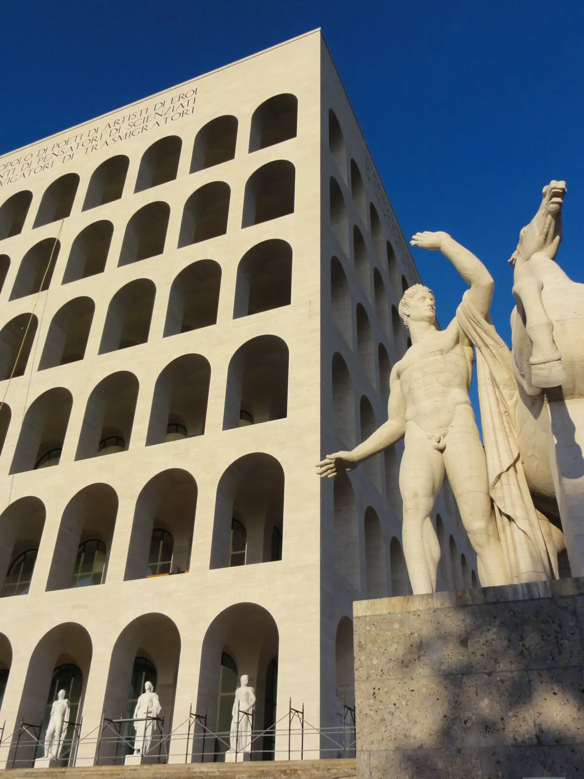 Atmosferę kwadratowego Koloseum dopełniają monumentalne rzeźby: dwadzieścia osiem alegorii cech narodu włoskiego oraz