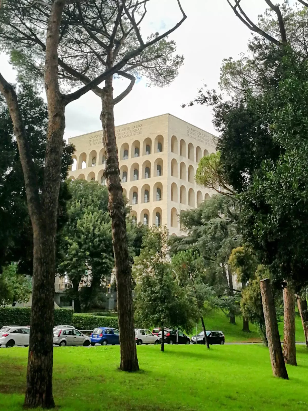 Cały pałac jest architektonicznym hołdem złożonym wodzowi. Wielki napis – ten sam z każdej strony budynku – to cytat, prawie dosłowny, z płomiennej przemowy Ducze wygłoszonej w 1935 r. w opozycji do Ligi Narodów, która potępiła Włochy za agresję na Abisynię. “Un popolo di poeti, di artisti, di eroi, di santi, di pensatori, di scienziati, di navigatori, di trasmigratori”, „Naród poetów, artystów, bohaterów, świętych, myślicieli, naukowców, podróżników, emigrantów”. Z mowy wodza pominięto jedynie słowo “colonizzatori”, kolonizatorzy – było za mocne i zbyt otwarte nawet dla faszystów.