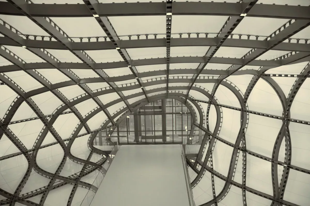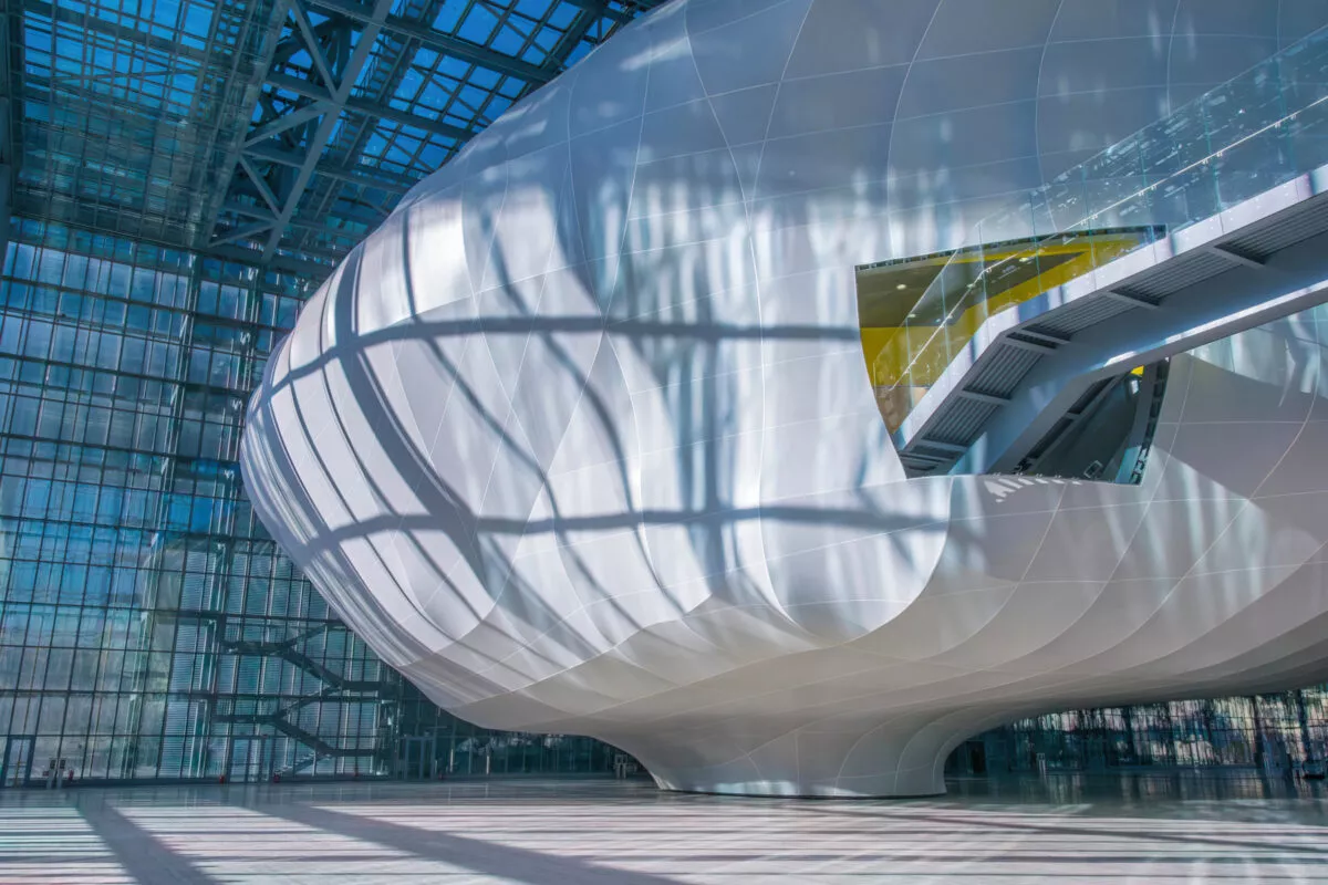 W wielkiej szklanej tece budynku zamknięta jest mleczna Chmura – stalowy szkielet pokryty arkuszem mikroperforowanego włókna szklanego. System mostów prowadzi odwiedzających do wnętrza chmury, ujawniając faliste kształty żeber metalowej ramy konstrukcji.
