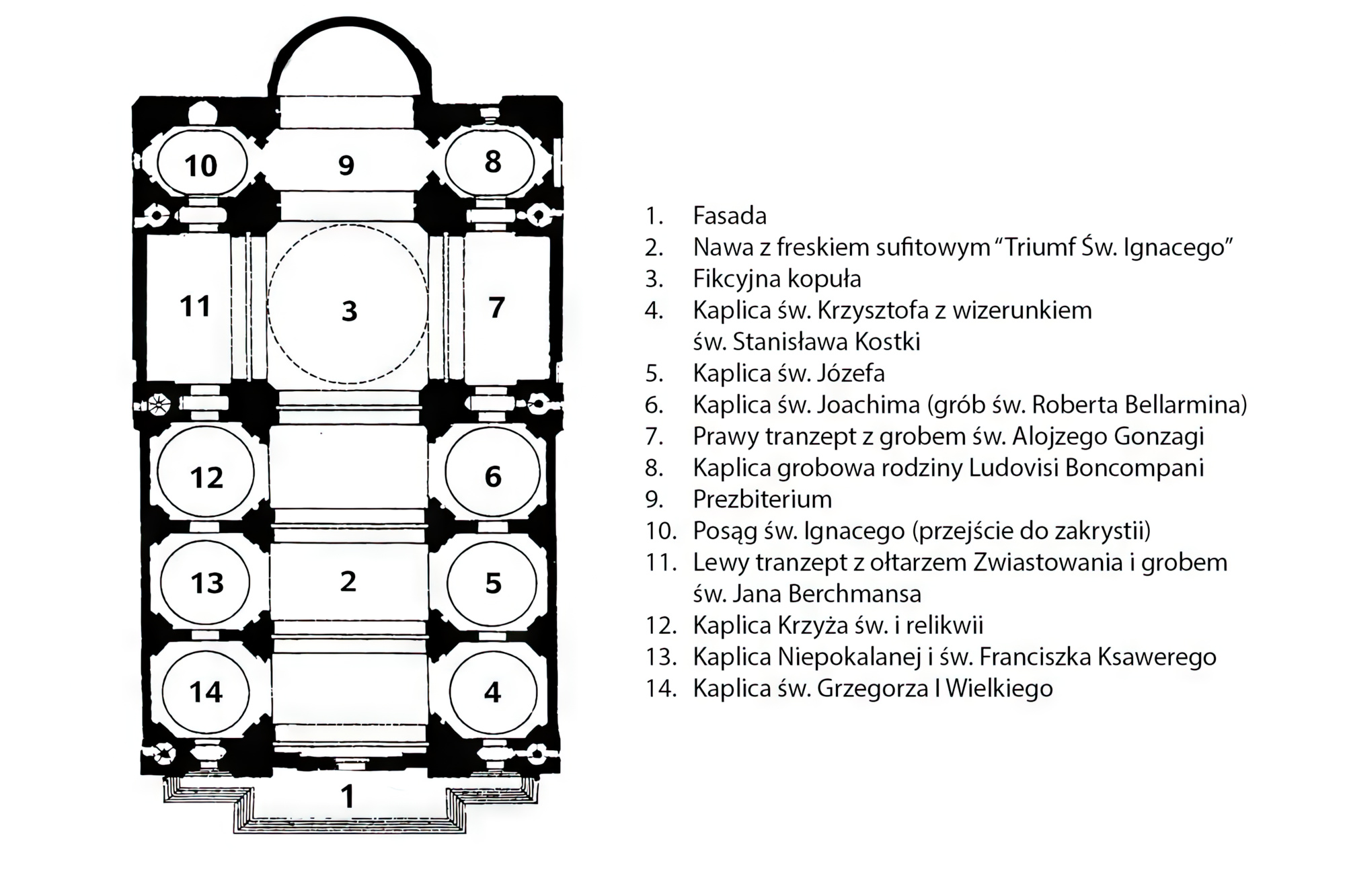 Dlaczego? Zabrakło funduszy, ale jezuita Andrea Pozzo nie dał za wygraną. Zamiast tego artysta stworzył trompe-l’oeil, czyli malowidło dające wrażenie przestrzennej kopuły. Efekt jest tak doskonały, że można się dać nabrać. Iluzja kopuły jest tak realistyczna, że wielu turystów odchodzi z przekonaniem, że właśnie widziało dzieło architektoniczne, a nie malarskie. To niezwykłe połączenie nauki i sztuki pokazuje, jak głęboko jezuici wierzyli w wartość edukacji.